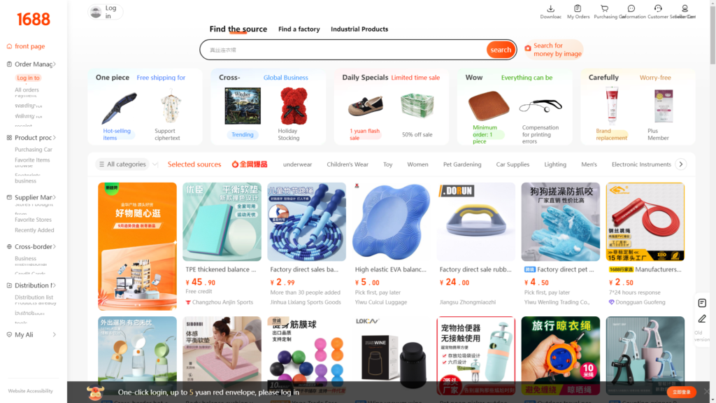 Begin by opening Google Chrome and entering https://www.1688.com/ in the address bar to access the homepage. Since the website is in Chinese, using Google Chrome’s translation plugin is highly recommended. While the translation may not be perfect, it will help you understand the basic information needed to navigate the site.