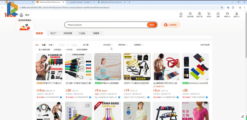 To enhance your search, consider using Google Translate to convert your product keywords into Chinese. For example, if you’re searching for “fitness products,” translate this term into Chinese to access a broader range of options. Using Chinese keywords often yields more comprehensive results on 1688.
