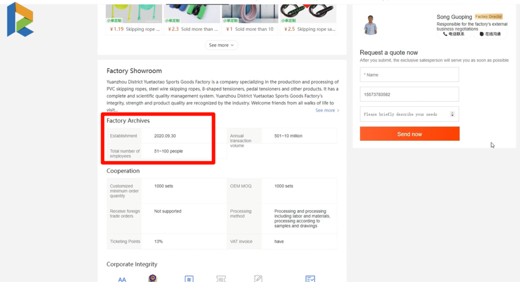 It’s crucial to assess the credibility of the supplier. Click on the Factory Archives to view detailed information about the supplier. Ideally, choose suppliers that have been established for at least three years and have between 50-500 employees, as these factors can indicate a more reliable manufacturer.